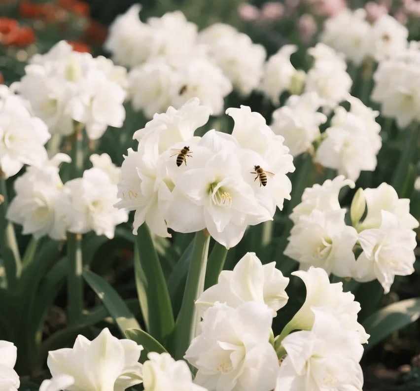 З простої цибулини, з’являється міцне квітконосне стебло заввишки до 70 см, увінчане 3–6 великими квітами у формі труби розміром з долоню. Насичені, оксамитові кольори, від вогненно-червоного та ніжного рум’янцю до чистого білого, миттєво освітлюють будь-який інтер’єр, стаючи безперечним візуальним центром уваги.