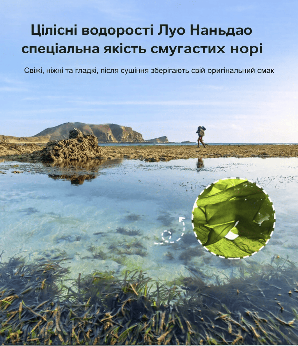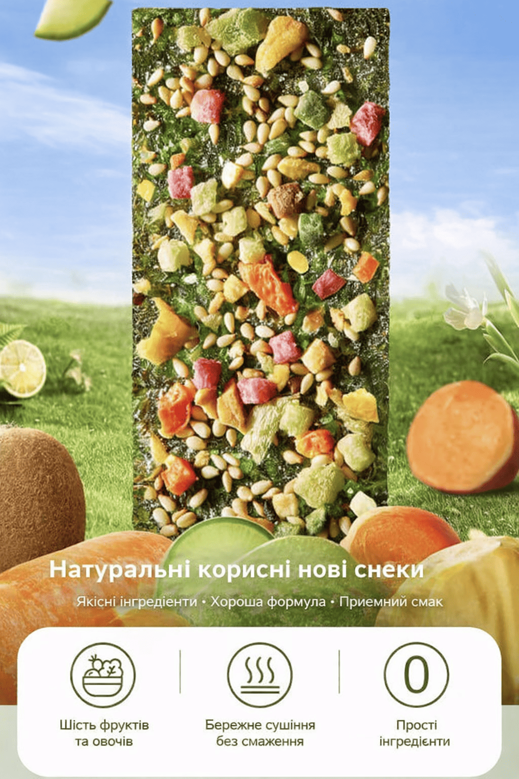 Спочатку сумнівався через поєднання, але це реально смачно 😍 Солонуватий норі відмінно поєднується із сушеними фруктами - виходить баланс солодкого та солоного. Зручно брати з собою відмінний варіант замість звичайних чіпсів.
