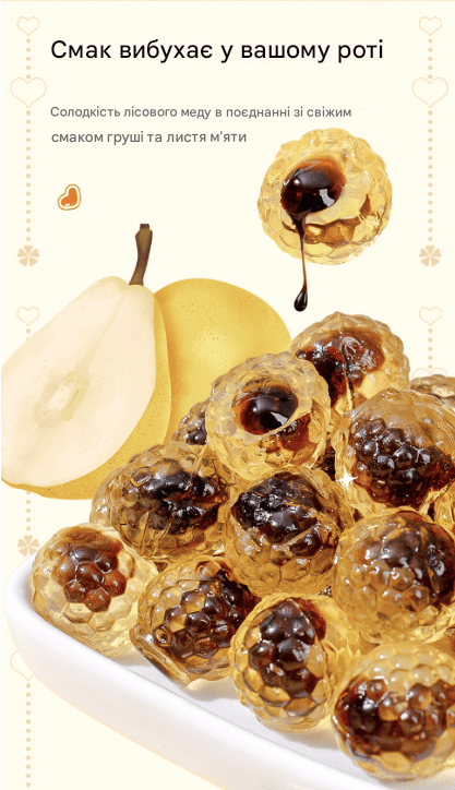 Добре допомагає при болю в горлі, тривалий ефект, високоякісні інгредієнти, м'які, жувальні та смачні.
