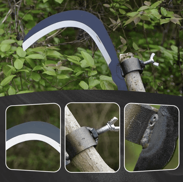 ДУЖЕ ГОСТЕ ЛЕЗО: Лезо надзвичайно гостре, має двосторонній дизайн, що полегшує різання гілок і трави. Не потребує заточування, що робить вашу роботу швидкою і легкою.