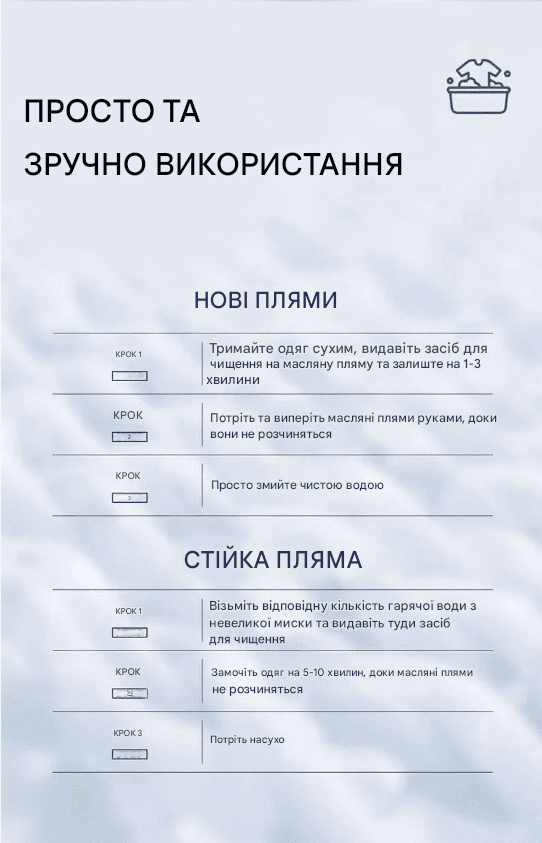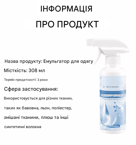 🔍 Засіб для видалення плям: Швидко видаляє стійкі плями.
